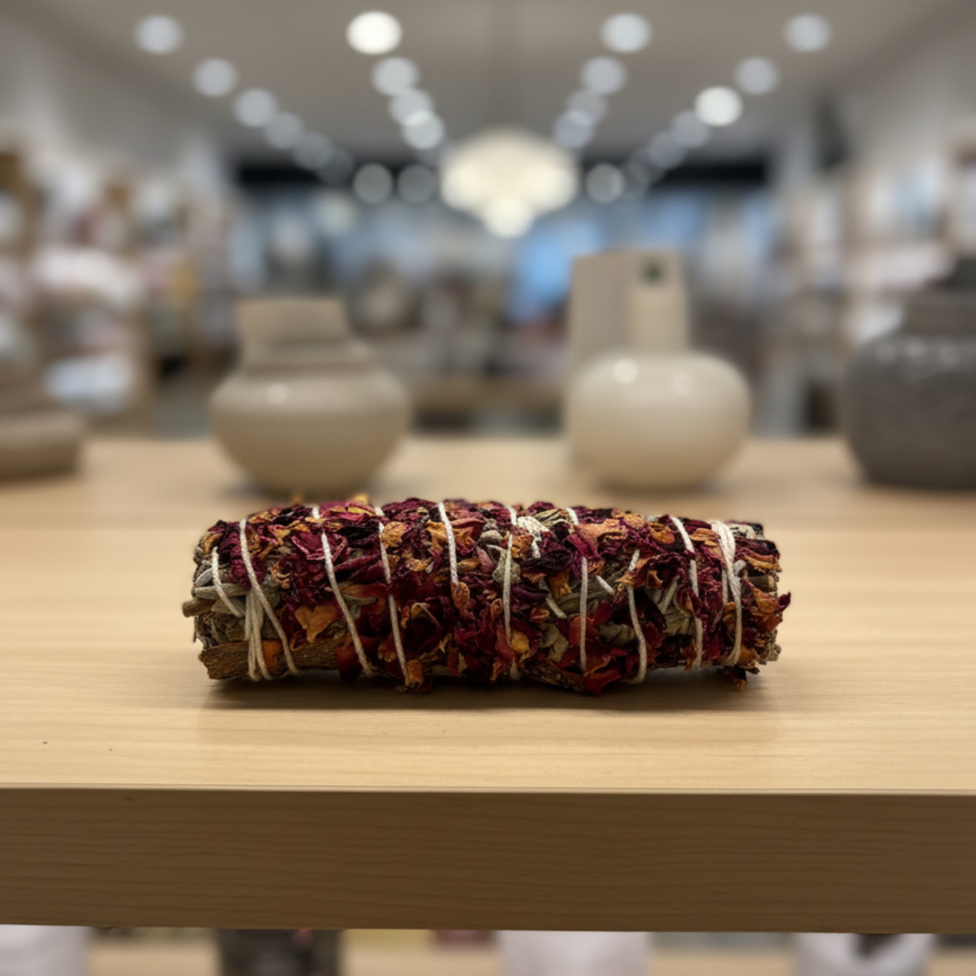 Terra doce, pétalas suaves e o calor do lar unem-se nas Tochas Banjara – Sálvia do Himalaia, Rosa e Canela. Feitas à mão, combinam o poder purificador da sálvia com a delicada fragrância da rosa e o toque acolhedor da canela, criando uma fumaça que limpa, acalma e eleva o espírito.