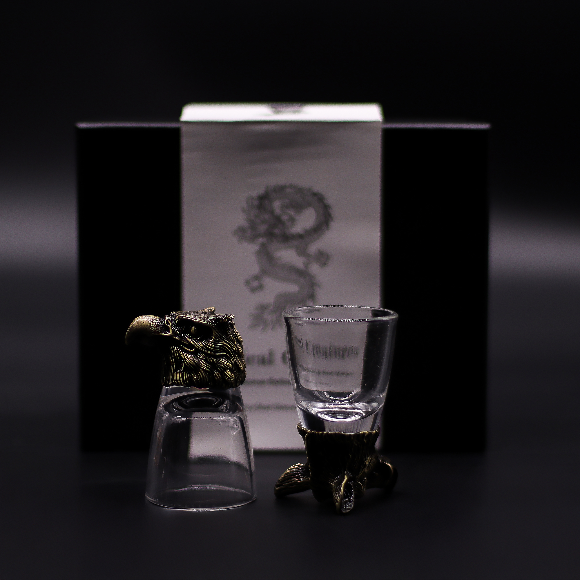 Fabricados em vidro transparente com bases metálicas em bronze antigo, unem praticidade e um design rústico e elegante. A capacidade de 50ml torna-os perfeitos não só para shots de bebidas espirituosas, mas também para servir licores artesanais ou pequenas degustações.