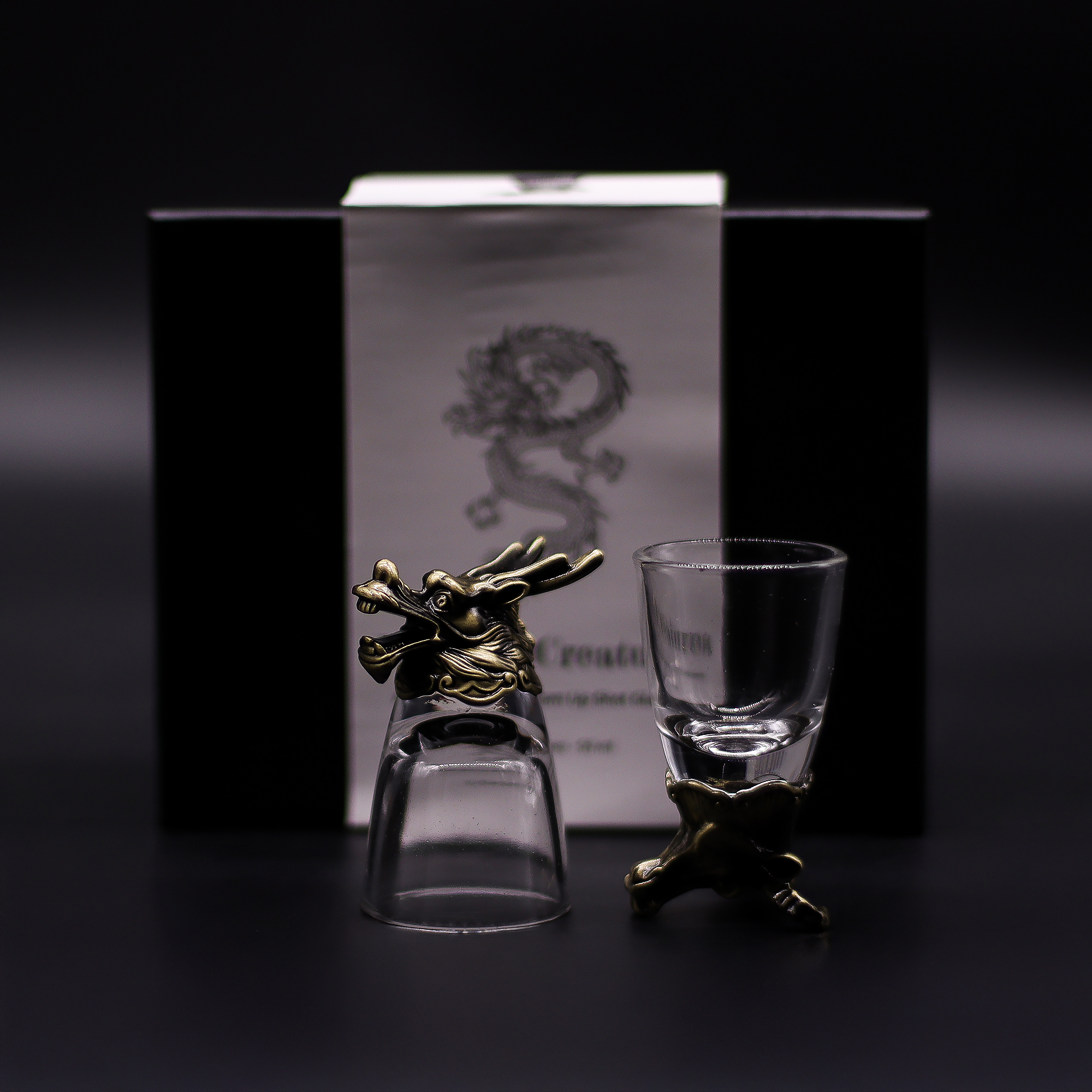 Fabricados em vidro transparente com bases metálicas em bronze antigo, unem praticidade e um design rústico e elegante. A capacidade de 50ml torna-os perfeitos não só para shots de bebidas espirituosas, mas também para servir licores artesanais ou pequenas degustações.
