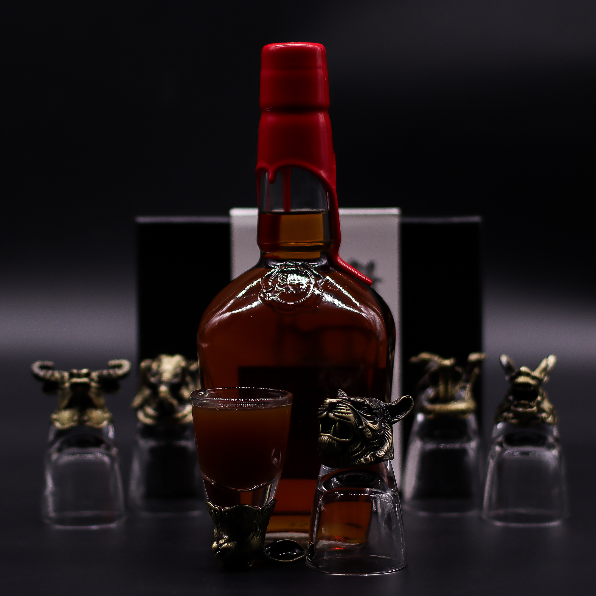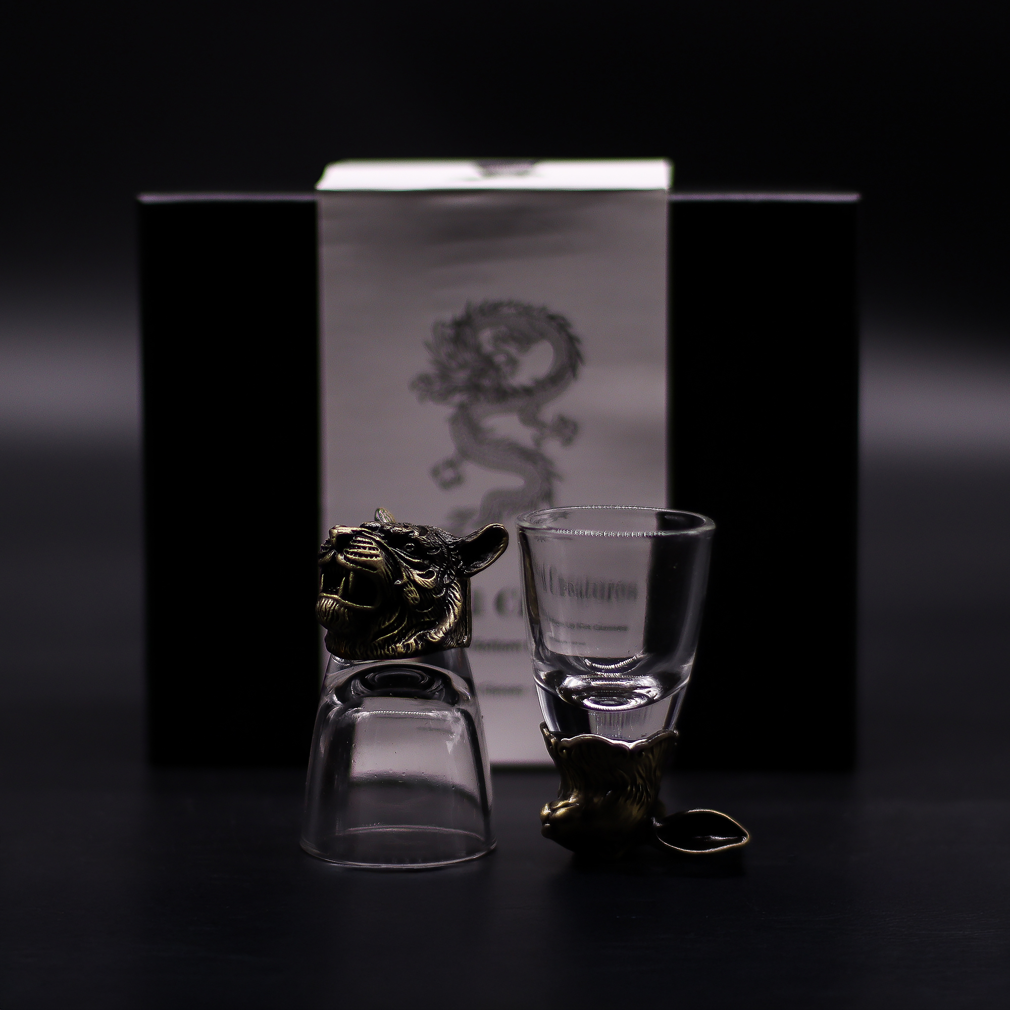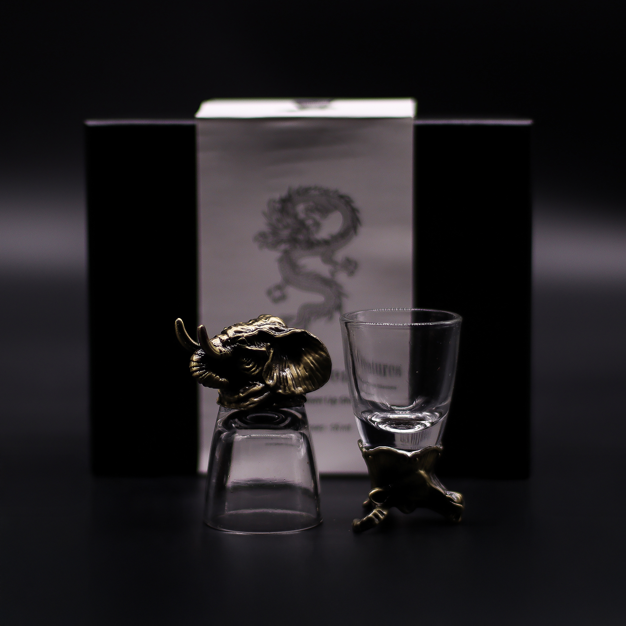 Conjunto de 6x Copos de Shot (50ml) – Criaturas Mística em acabamento bronze antigo da AW Artisan Portugal. Os copos são adornados com criaturas místicas como o coelho símbolo de prosperidade e fertilidade, a cobra associada à transformação e sabedoria e o elefante representação de força, sorte e longevidade.