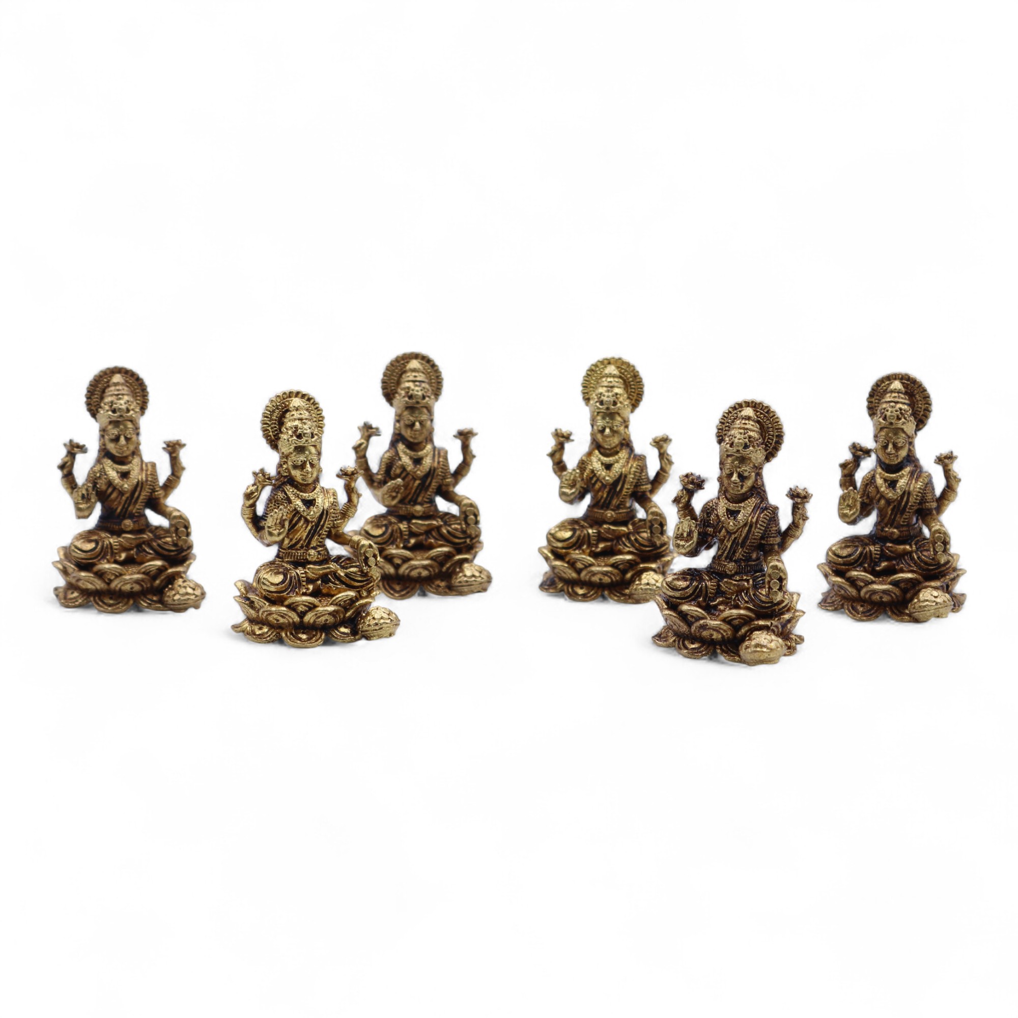 Estas miniaturas em latão da Deusa Laxmi são ricas em detalhe e simbolismo. Cada peça, com 37 mm e 22 g, representa prosperidade, abundância e boa fortuna, tornando-se uma adição especial para altares, espaços sagrados ou coleções espirituais.