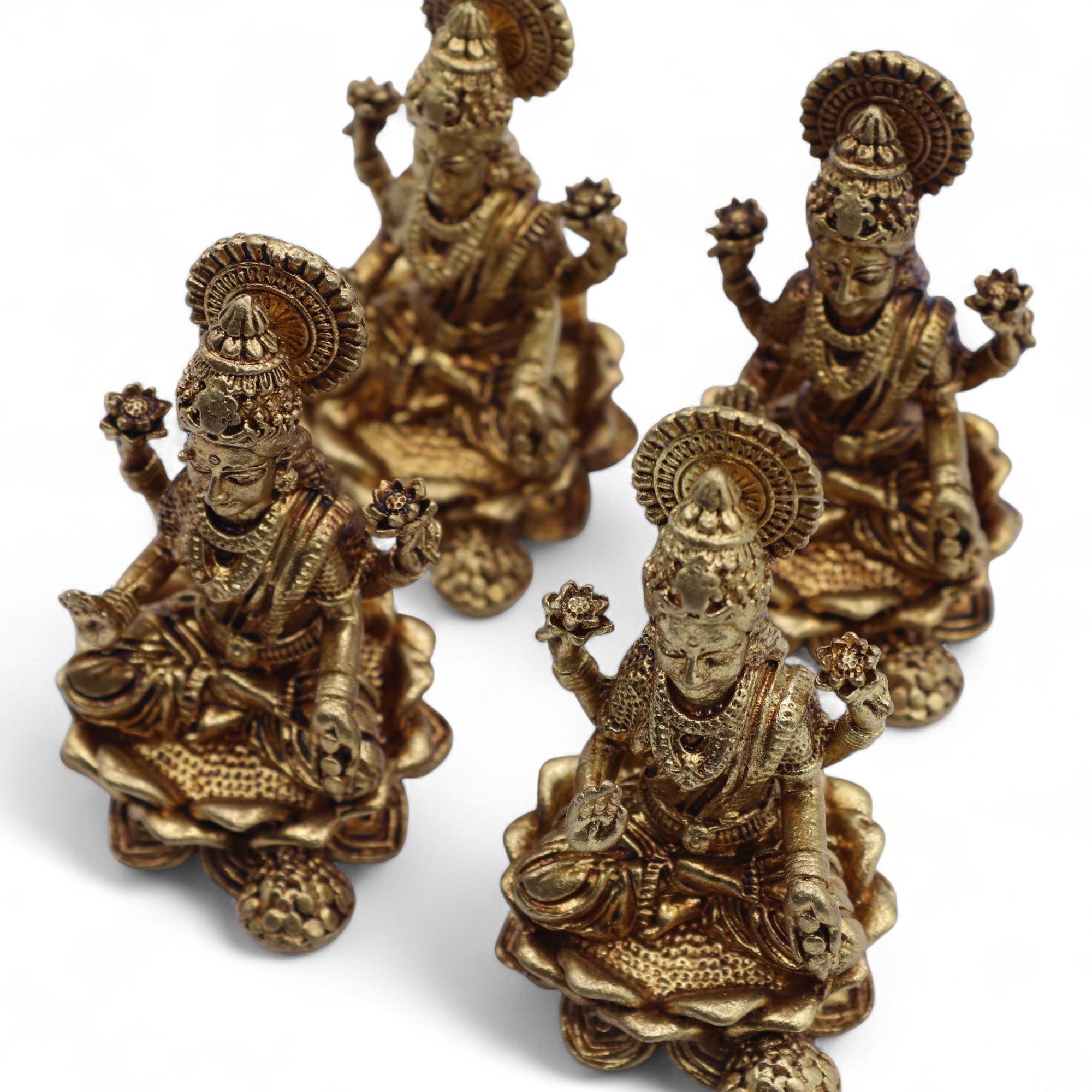 Laxmi, também chamada Lakshmi, é uma das divindades mais veneradas no hinduísmo, associada à riqueza material e espiritual. Habitualmente representada sobre uma flor de lótus, simboliza pureza, generosidade e o fluxo contínuo de bênçãos. É especialmente celebrada durante o festival de Diwali, quando se invoca prosperidade para lares e negócios.