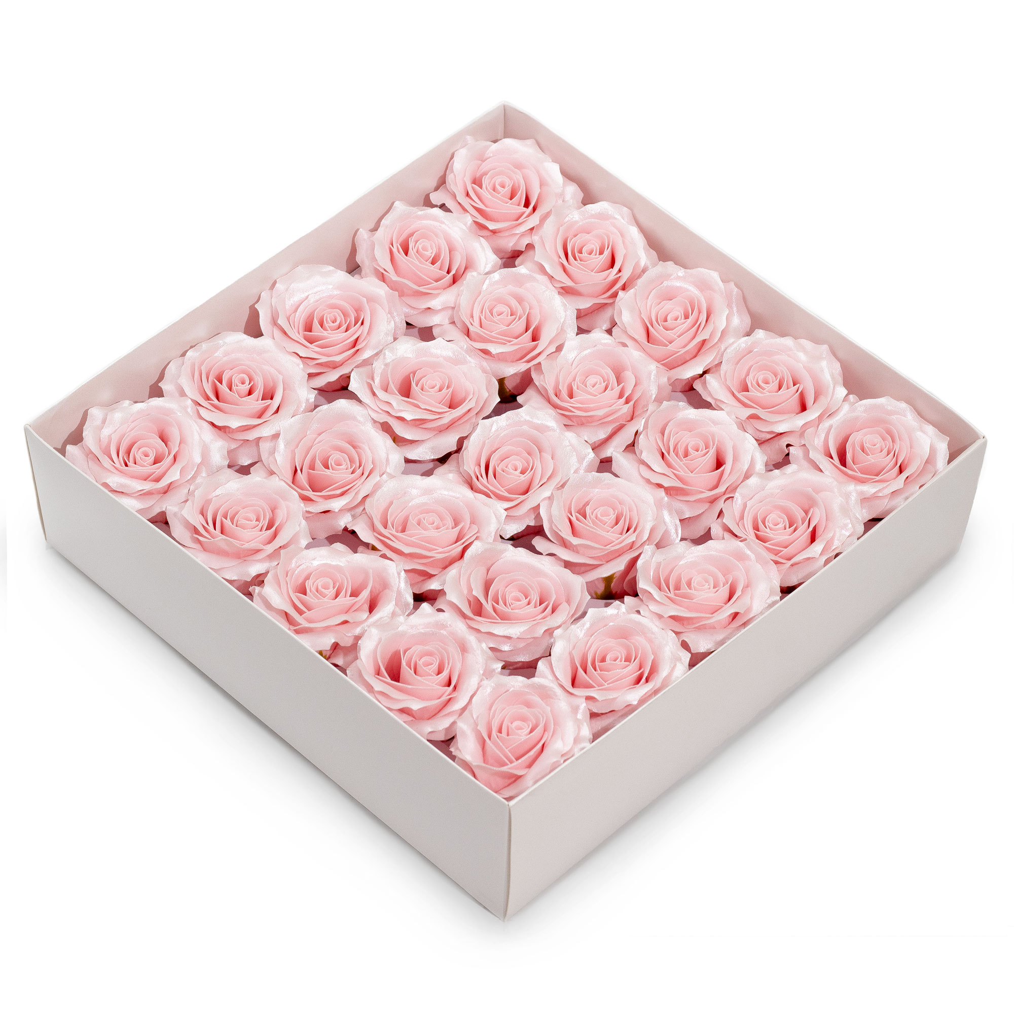 Cada caixa contém 25 rosas, ideais para decoração de interiores, expositores de presente, casamentos ou cestos de spa. O seu tom rosa suave transmite ternura, feminilidade e harmonia, tornando-as perfeitas para composições florais e ambientes acolhedores.