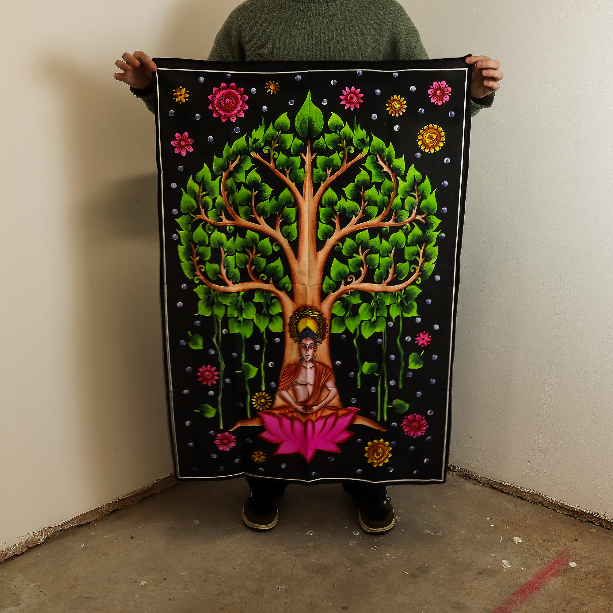 Com cores harmoniosas e detalhes delicados, esta tapeçaria é perfeita para criar ambientes tranquilos e inspiradores. Ideal para lojas de decoração alternativa, espaços zen, estúdios de yoga, meditação, terapias holísticas ou simplesmente para quem deseja elevar a energia da sua casa.