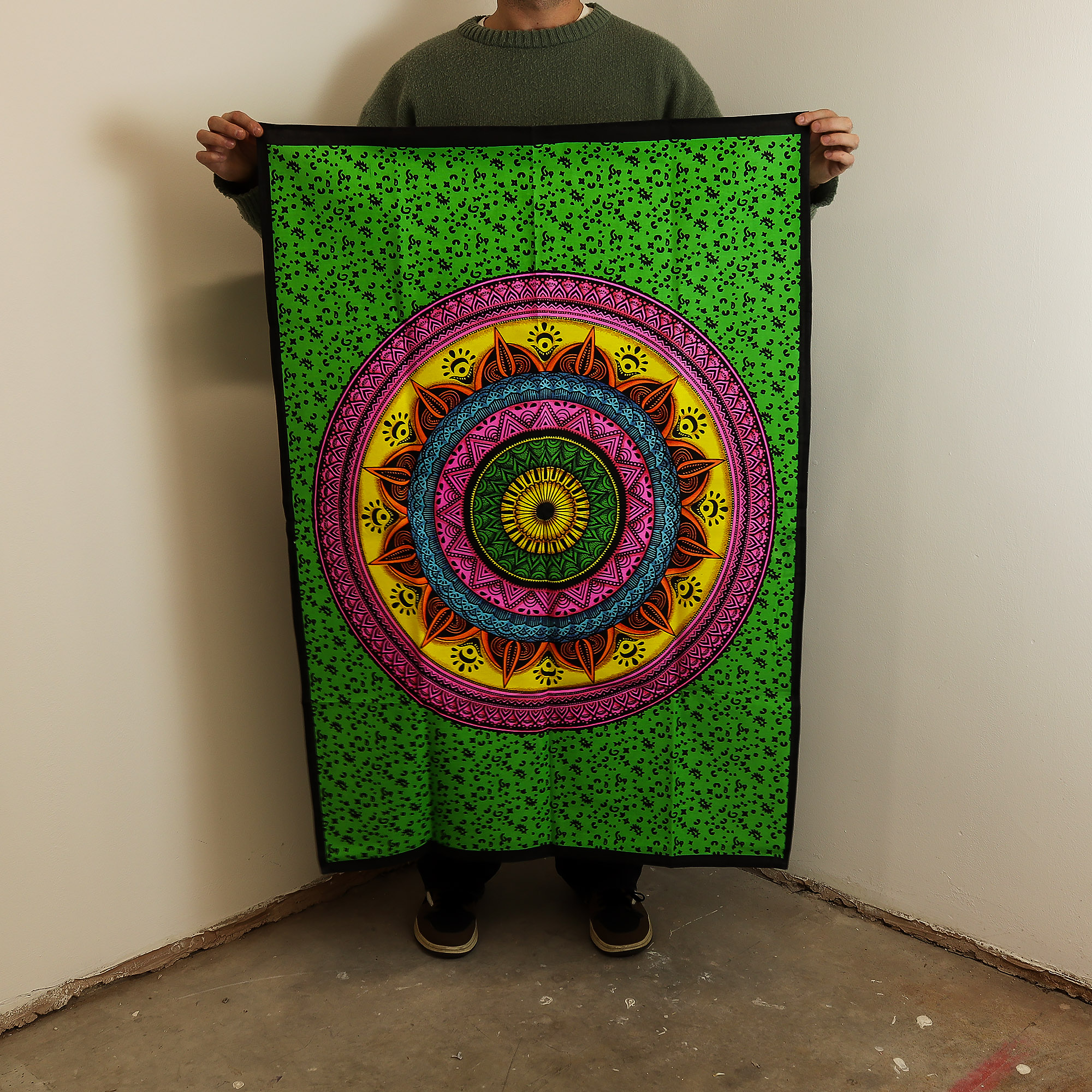 Com cores fortes e um design detalhado, esta tapeçaria cria um ponto de destaque em qualquer ambiente. Ideal para lojas de decoração alternativa, espaços zen, estúdios de yoga, salas de meditação, terapias holísticas ou casas que desejam adicionar um toque artístico e espiritual.