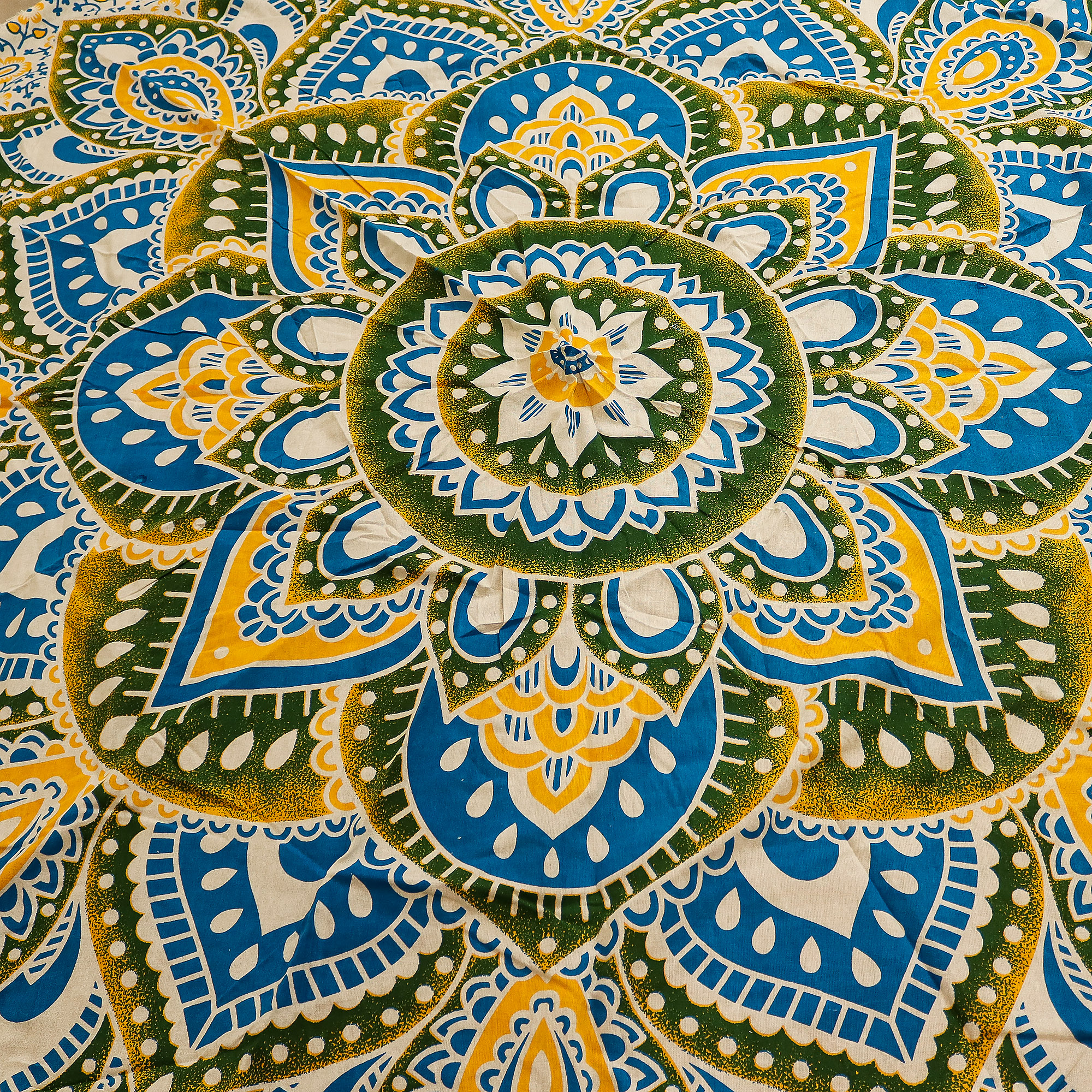 O seu design marcante torna-a perfeita para salas amplas, quartos, estúdios de yoga, áreas de meditação, lojas alternativas ou ambientes criativos. Versátil, pode ser usada como tapeçaria de parede, toalha decorativa, base para altar ou elemento central de destaque.