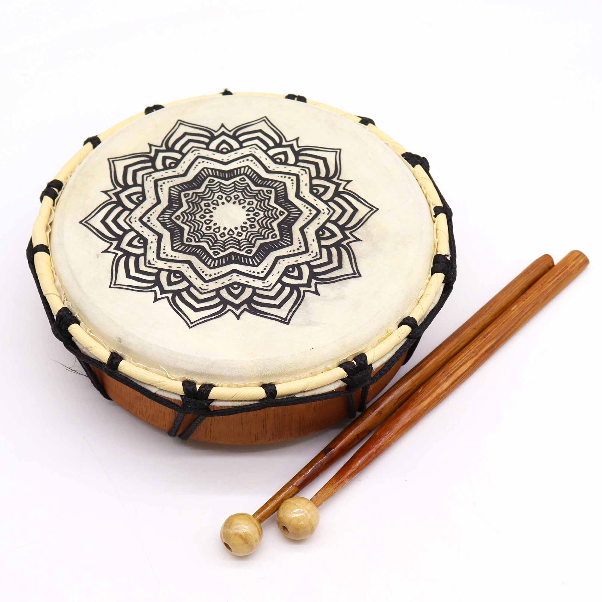 Descubra o Tambor Xamânico 20 cm com Símbolo Mandala e 1 Baqueta, uma peça artesanal que une cultura, arte e espiritualidade. Inspirado na tradição da África Ocidental, este mini djembe transporta a essência dos ritmos do Mali num formato compacto e decorativo.