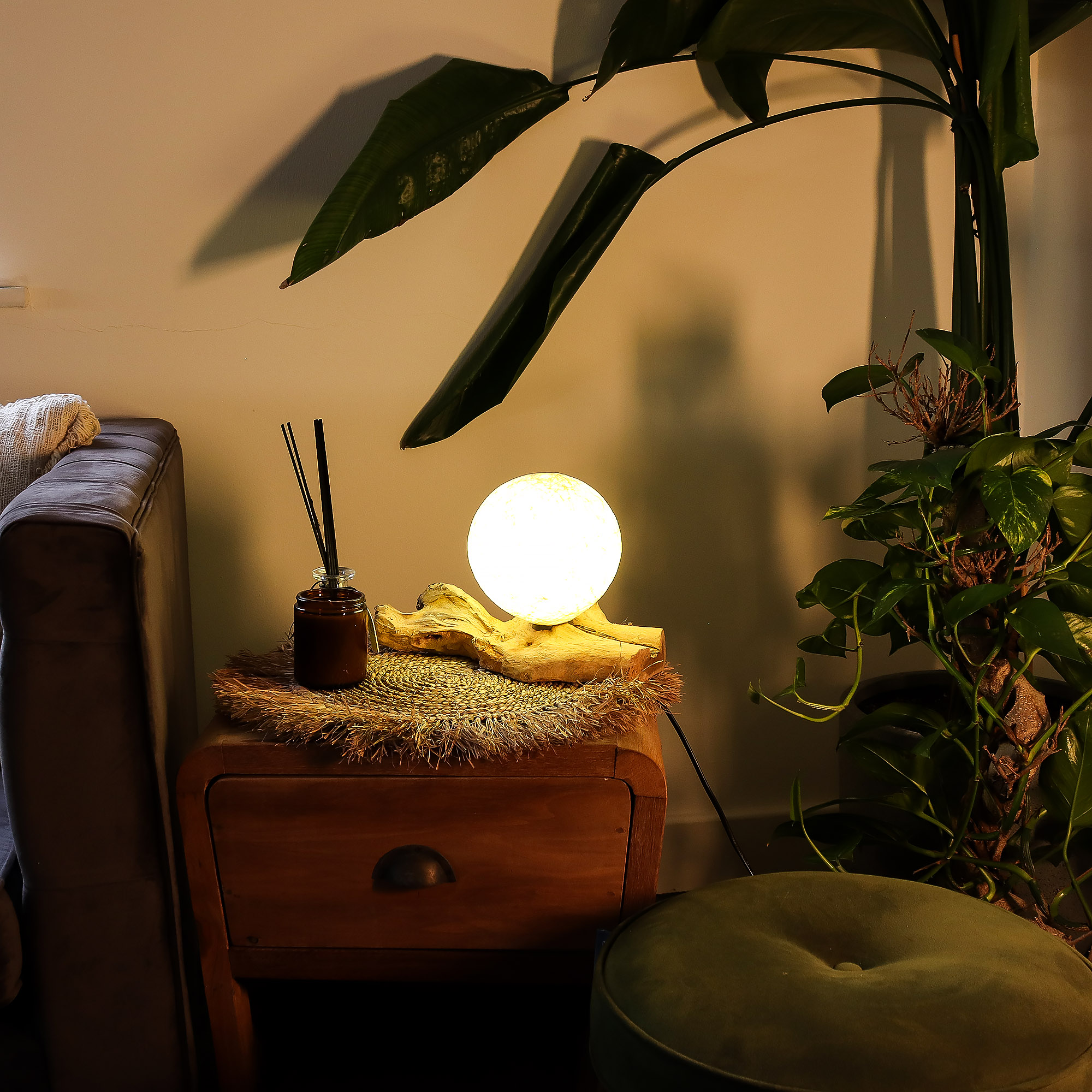 Cada candeeiro possui uma base em madeira trabalhada manualmente, garantindo exclusividade total, nenhuma peça tem o mesmo acabamento ou textura. Esta autenticidade responde à crescente tendência por artigos únicos, sustentáveis e com inspiração orgânica. Ideal para lojas que procuram produtos diferenciadores, de forte apelo visual e fácil venda.