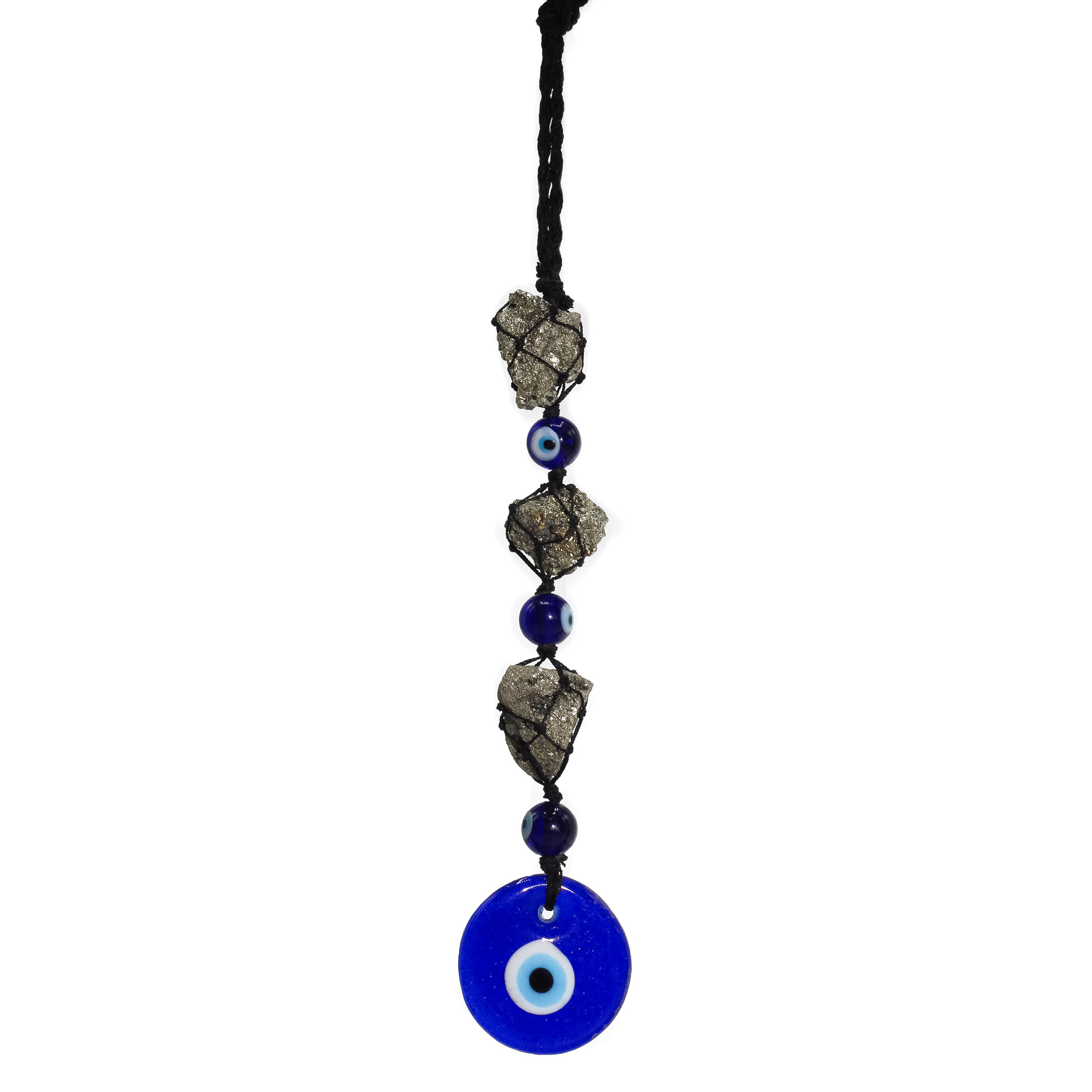 A Pirite atrai sorte, sucesso e abundância, estimulando a autoconfiança e a clareza mental. As contas decorativas complementam o design, tornando-o não apenas um amuleto de proteção, mas também uma peça elegante para qualquer espaço. Ideal para pendurar em casas, lojas ou locais de trabalho, ajudando a purificar o ambiente e atrair boas vibrações.
