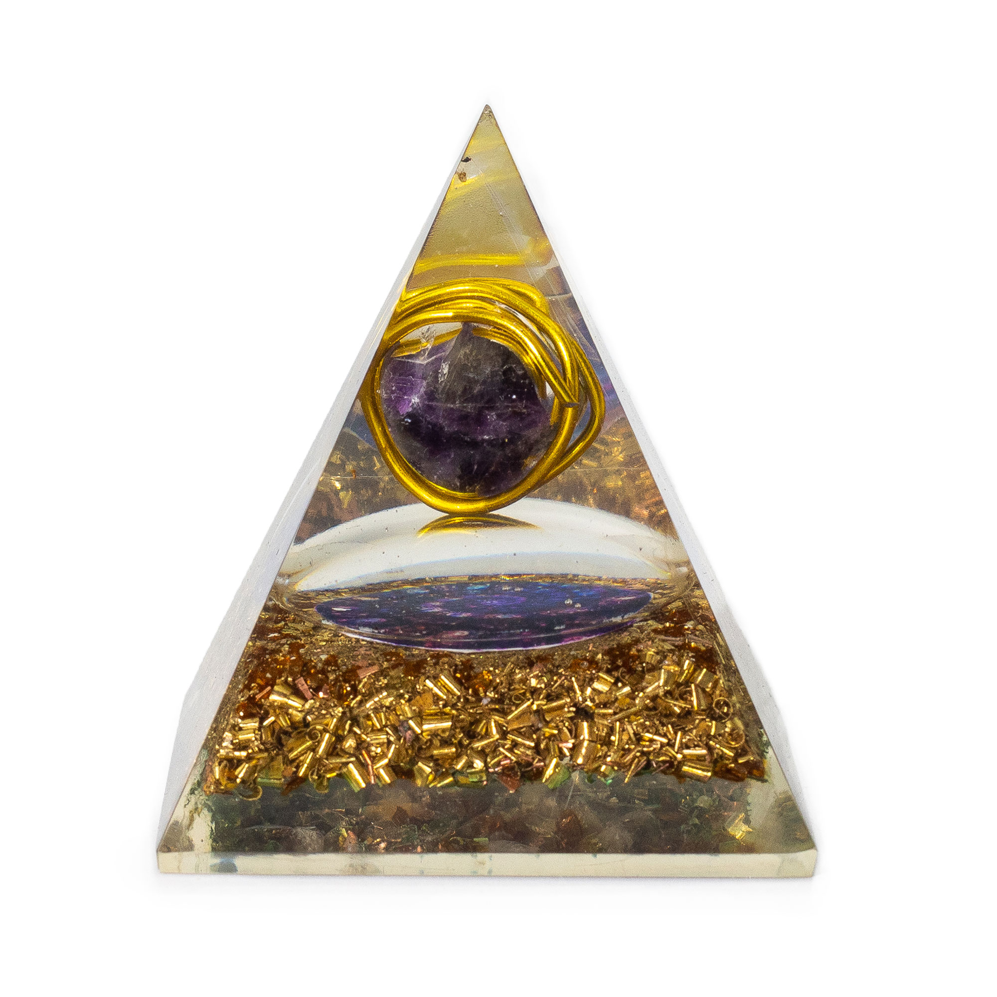 Traga equilíbrio espiritual e elegância natural à sua gama com a Pirâmide de Orgonite – Ametista Enrolada com Fragmentos de Cobre. Cada pirâmide é cuidadosamente produzida à mão em resina, cobre e pedras naturais, apresentando um cristal de ametista envolto em fio metálico, rodeado por fragmentos de cobre que potenciam o fluxo energético e amplificam vibrações positivas.