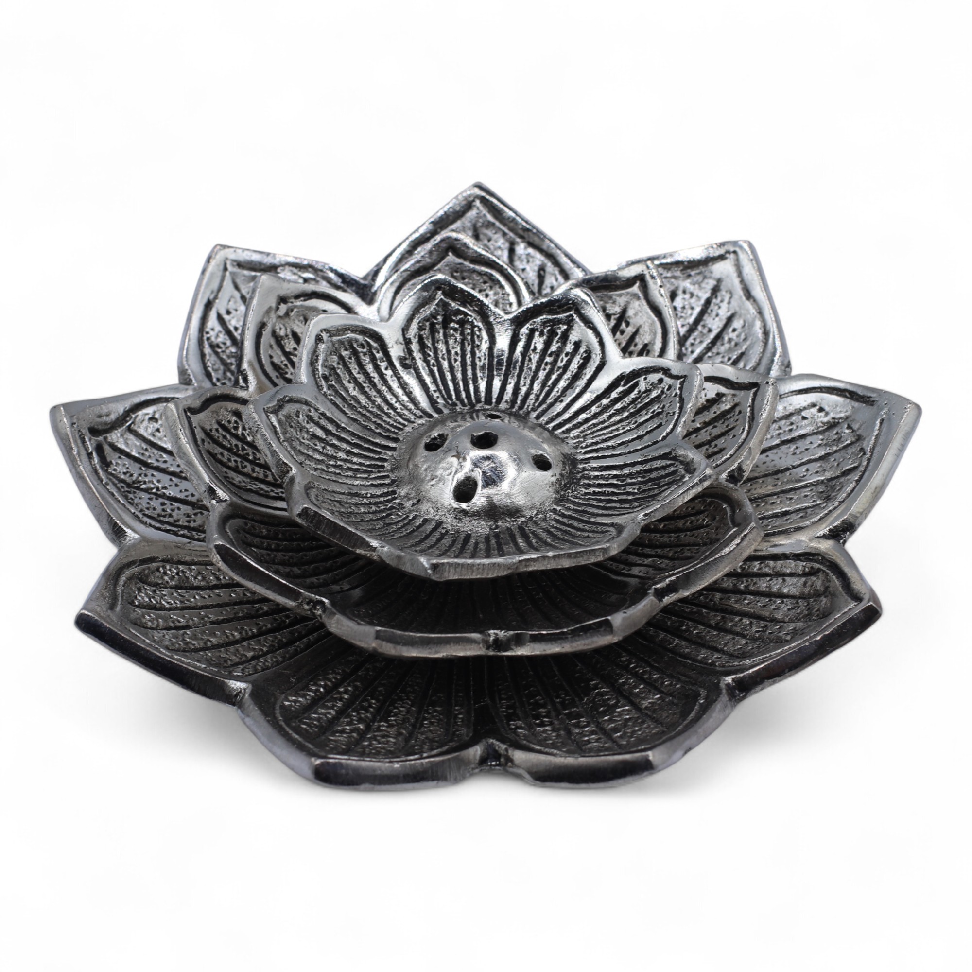 Eleve os seus rituais aromáticos com este Porta-incenso de Lótus de 3 Flores, uma peça decorativa que evoca pureza, equilíbrio e renovação, símbolos amplamente associados à meditação e ao bem-estar. A sua construção em camadas de pétalas confere profundidade visual, enquanto o acabamento metálico reflete a luz com suavidade, criando um ambiente sereno durante momentos de relaxamento, prática espiritual ou simplesmente para perfumar o espaço.