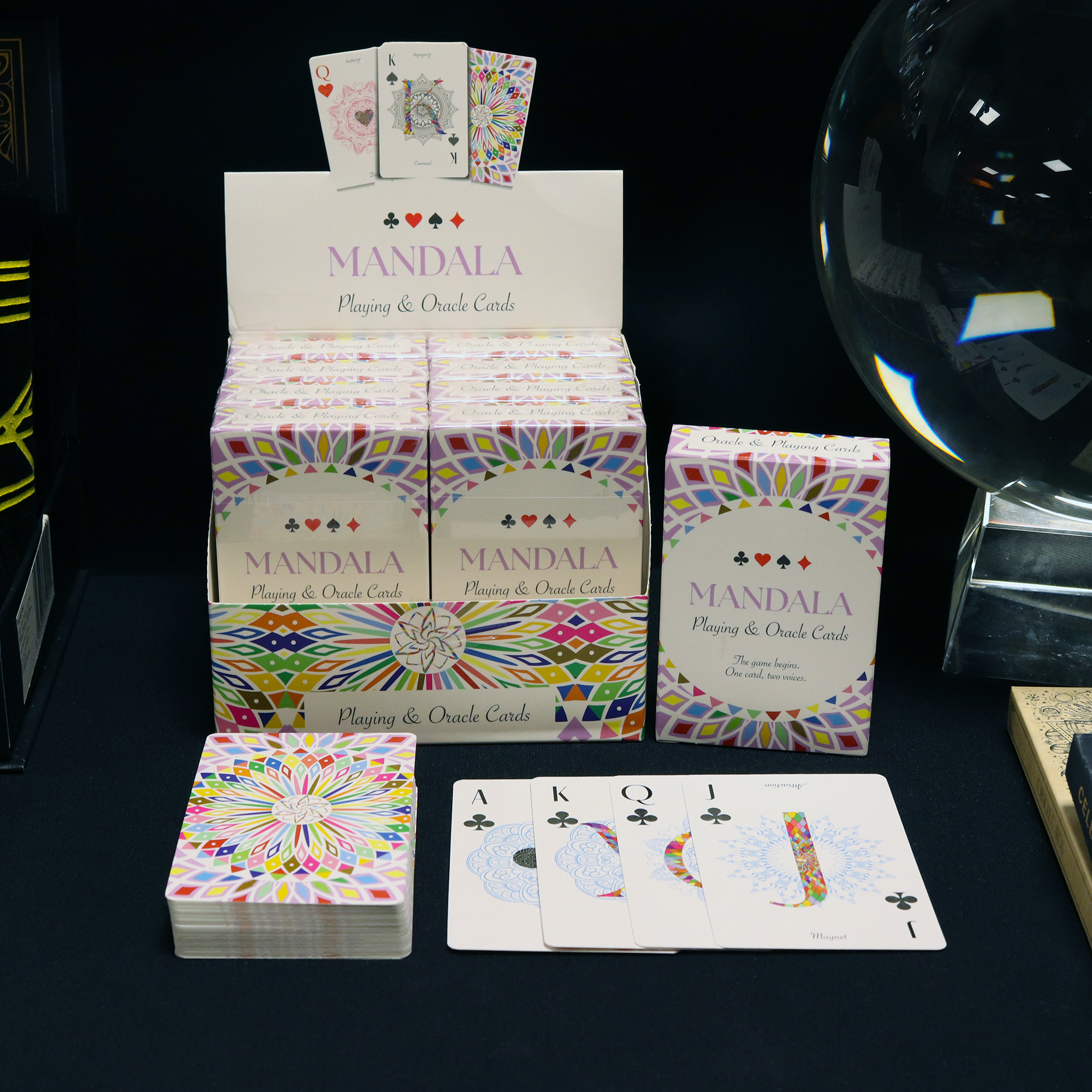 Adicione um toque de cor, harmonia e energia positiva à sua loja com os Baralhos de Cartas de Jogo & Oráculo Mandala, uma coleção que combina arte vibrante, geometria sagrada e um design visualmente hipnotizante.