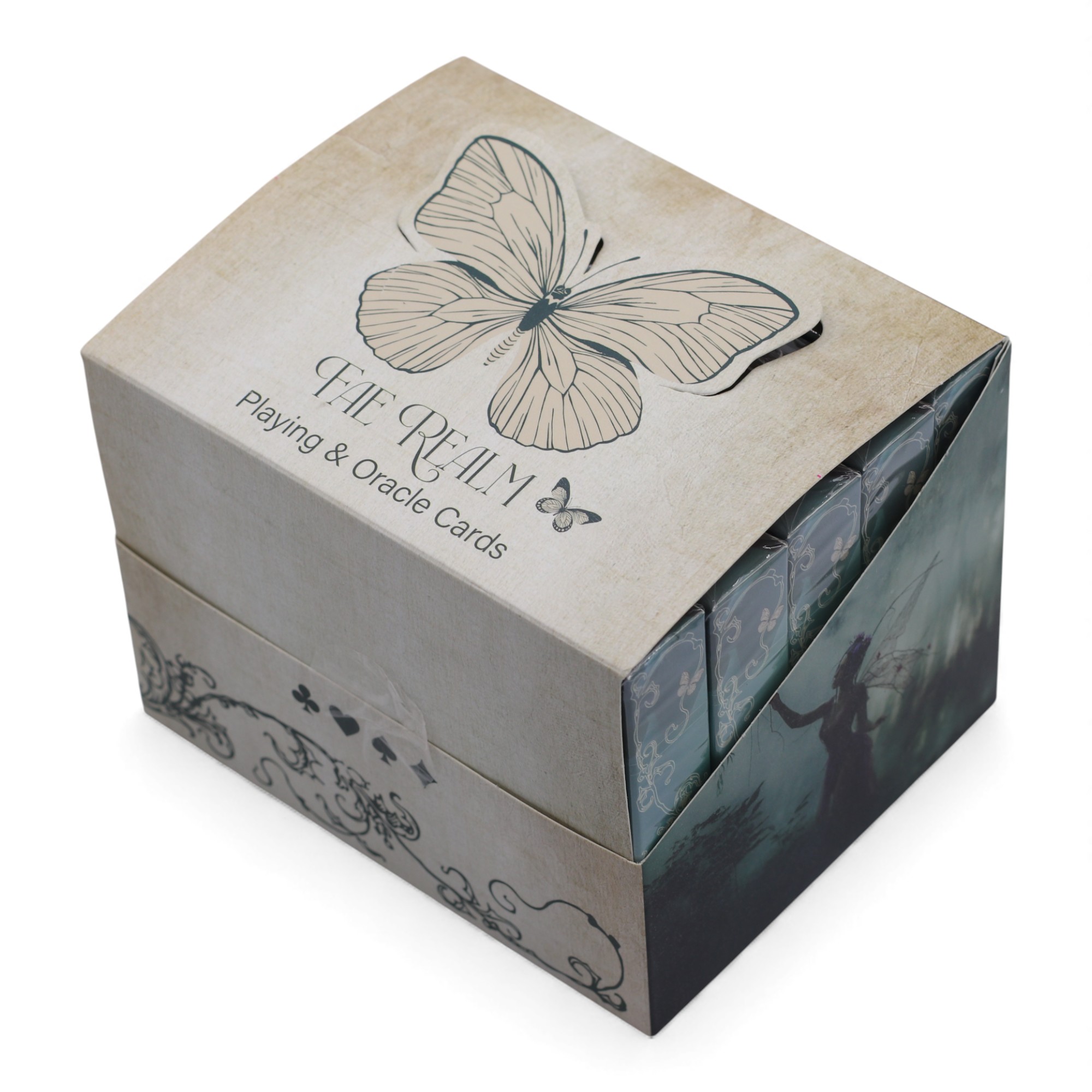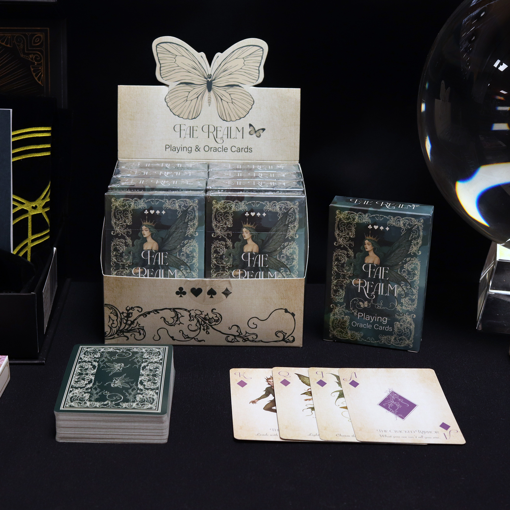 Adicione um toque de magia, encanto e mistério à sua loja com os Baralhos de Cartas de Jogo & Oráculo Fae Realm, uma coleção que celebra a beleza etérea das fadas, a sabedoria da natureza e o imaginário fantástico dos reinos ocultos.