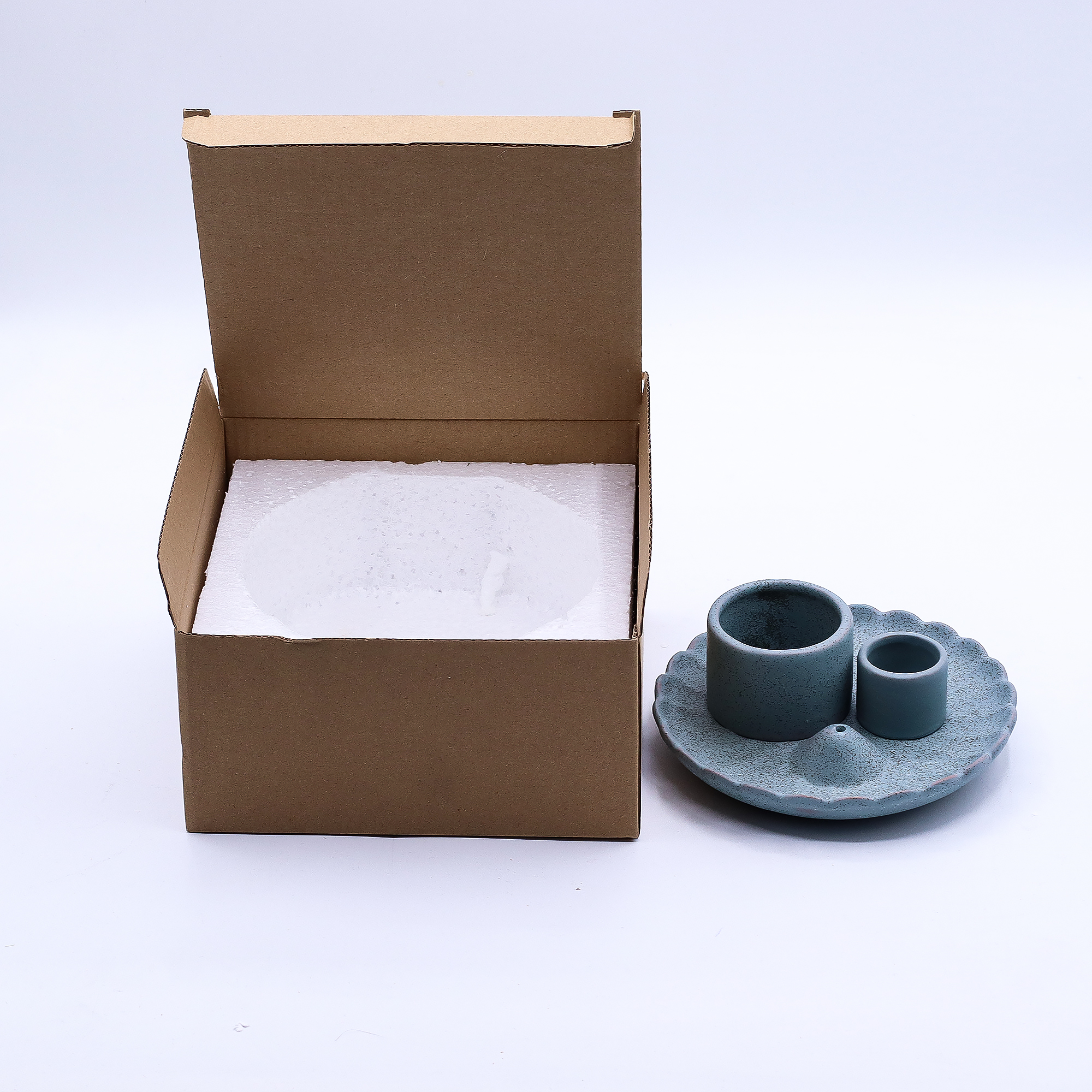Ofereça aos seus clientes uma forma elegante e funcional de integrar rituais e bem-estar em casa com o Suporte Cerâmico Azul para Pau Santo e Tochas de Sálvia. Feito em cerâmica durável e de alta qualidade, apresenta um acabamento mate azul que transmite serenidade e harmonia, ideal para complementar o ambiente espiritual.