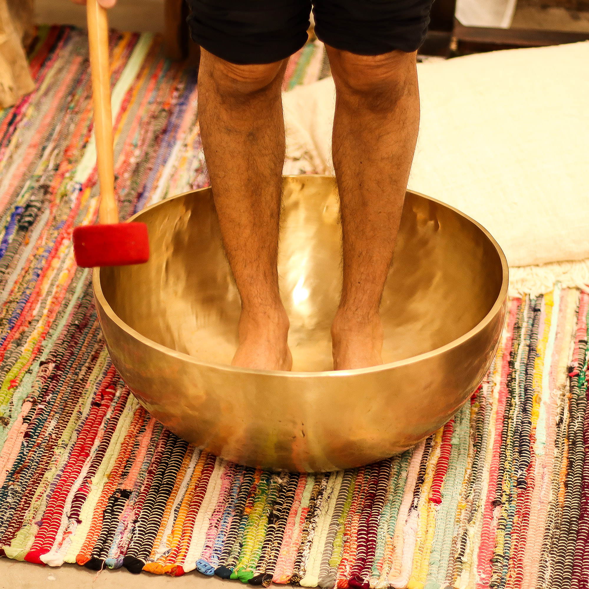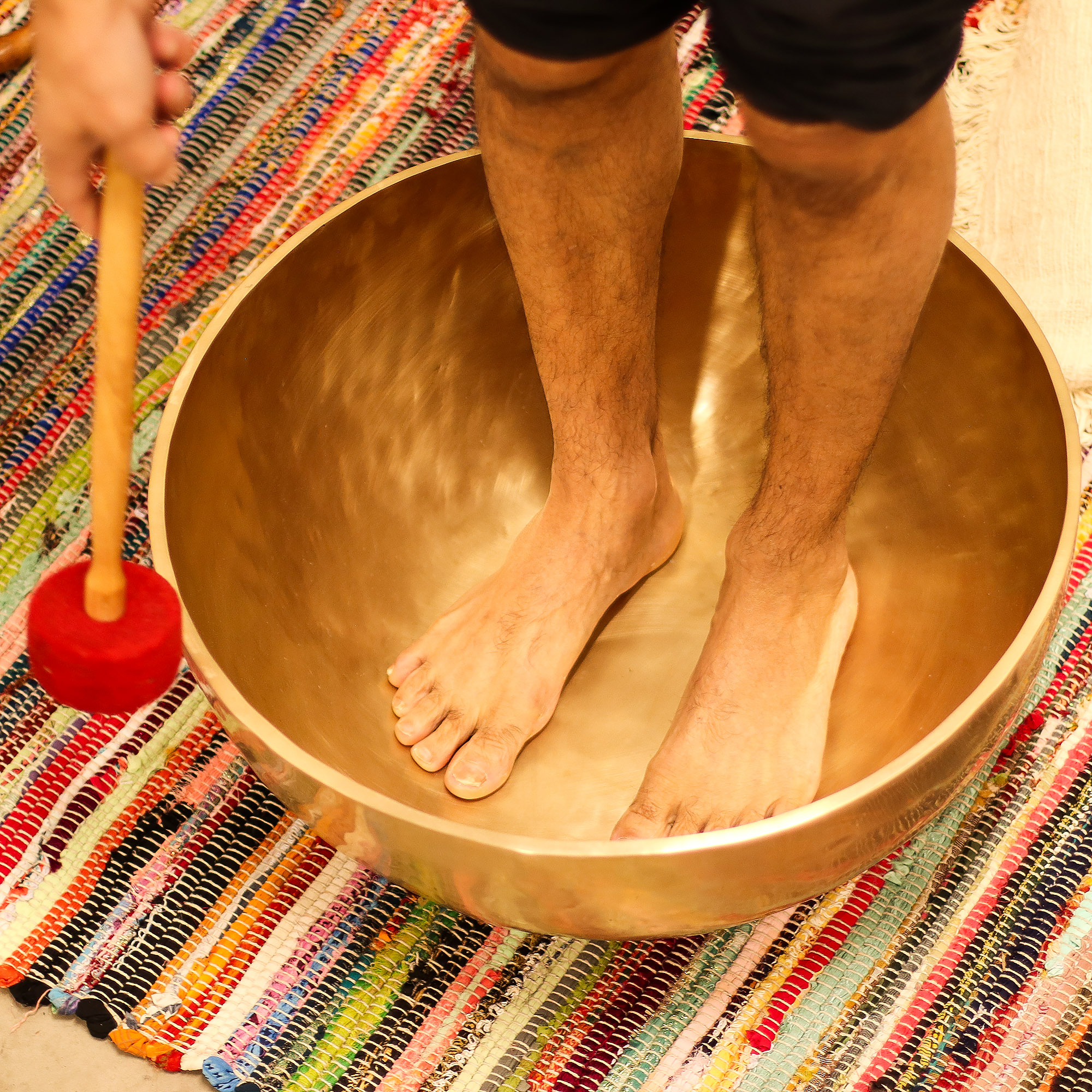 Mais do que uma peça decorativa, esta taça é criada para a antiga arte de sentir a vibração através dos pés. Quando tocada, emite tons profundos que percorrem o corpo, enraizando os pés e acalmando a mente, uma experiência meditativa inspirada nas tradições himalaias de terapia sonora.