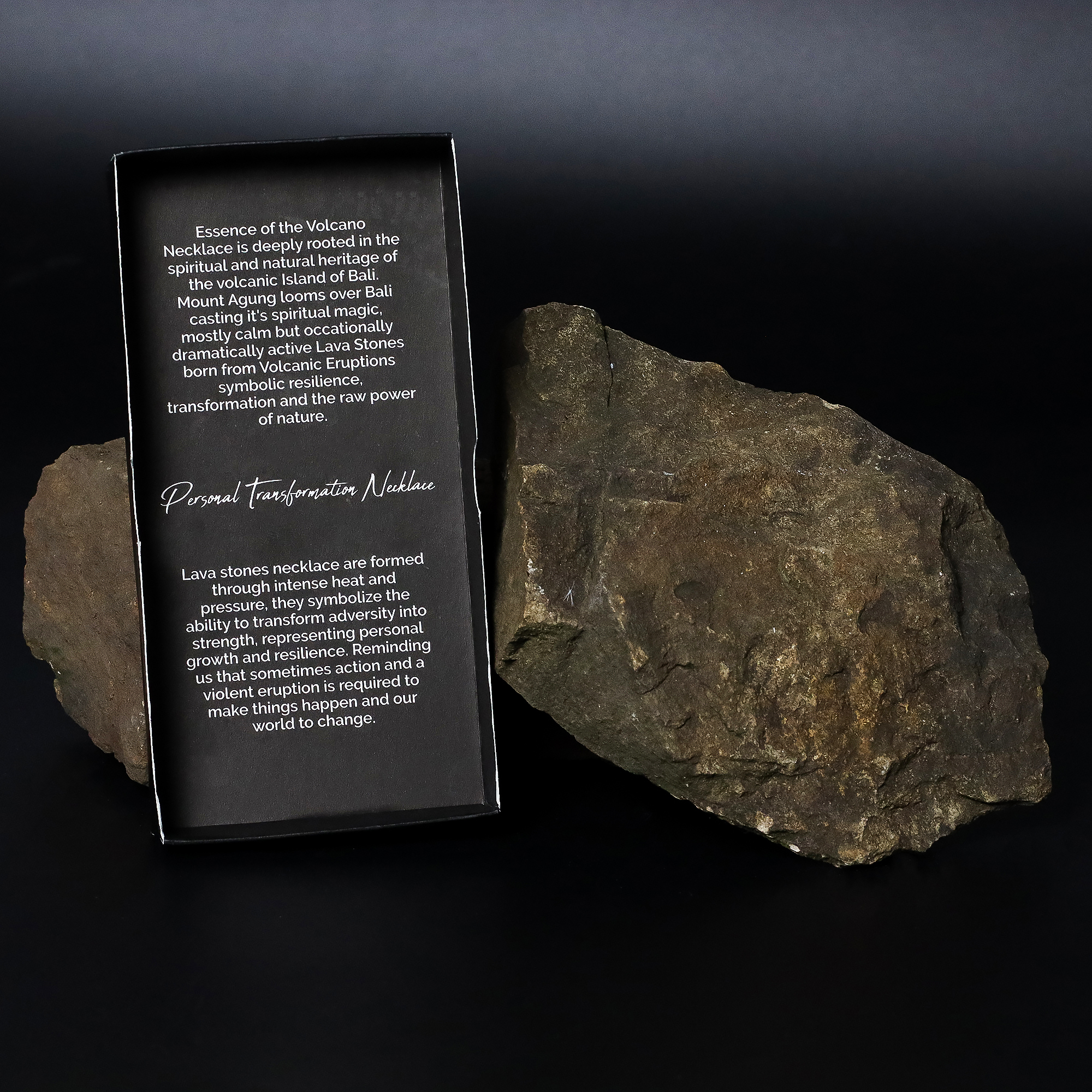 O Colar Essência do Vulcão – Transformação Pessoal é produzido artesanalmente em Bali com pedra vulcânica natural, formada sob calor e pressão intensos — um símbolo poderoso de força, resiliência e da capacidade de transformar desafios em crescimento.